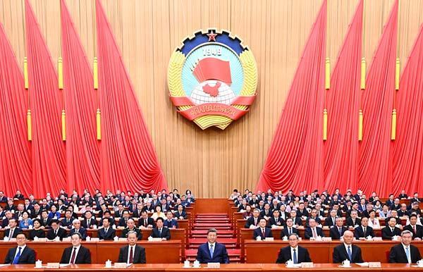 三月的北京,春启华章。人民大会堂大礼堂灯光璀璨,气氛隆重热烈。中国人民政治协商会议会徽悬挂在主席台正中,十面鲜艳的红旗分列两侧。