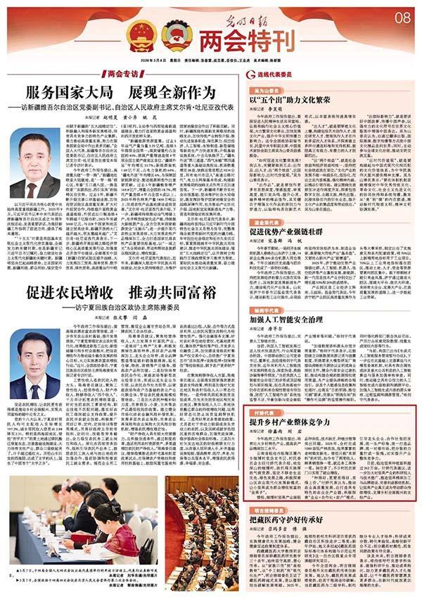“我关注到,政府工作报告提出,高质量发展文化旅游业,丰富文旅体商等融合业态。”杨钰尼表示,“我们非遗人、新农人干事创业,既要守住传统文化的根脉,让古老的非遗助力家乡文旅发展;又要搭上时代的快车,用数字技术让非遗更鲜活,用产业化思维让乡村富起来。”