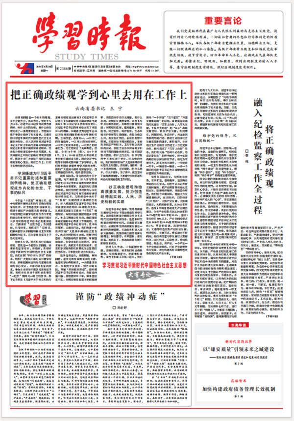 今年是“十五五”开局之年,党中央部署开展树立和践行正确政绩观学习教育,对于推进党和国家事业、推进全面从严治党都具有重要意义。云南坚持把开展学习教育作为今年党的建设的重要任务,组织党员干部深入学习领悟习近平总书记的重要论述,全面落实“立党为公、为民造福、科学决策、真抓实干”总要求,把解决思想认识问题和解决工作实际问题结合起来,在深学真查实改上下功夫见成效。