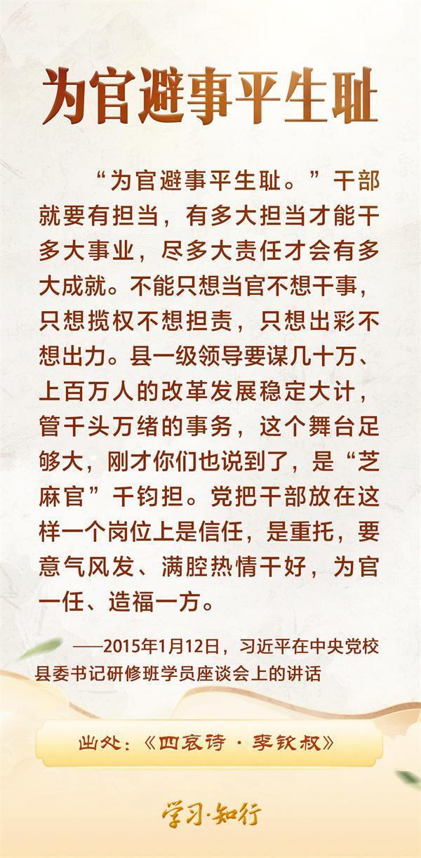 政绩观问题是一个根本性问题,关乎立党为公、执政为民。习近平总书记多次在重要场合引经据典、古为今用,借古人之智慧,深入阐述树立和践行正确政绩观的时代要求与实践路径。这些重要论述,旨在激励广大党员干部以求真务实的态度、真抓实干的作风,创造经得起实践和历史检验、真正造福人民、得到群众公认的业绩。
