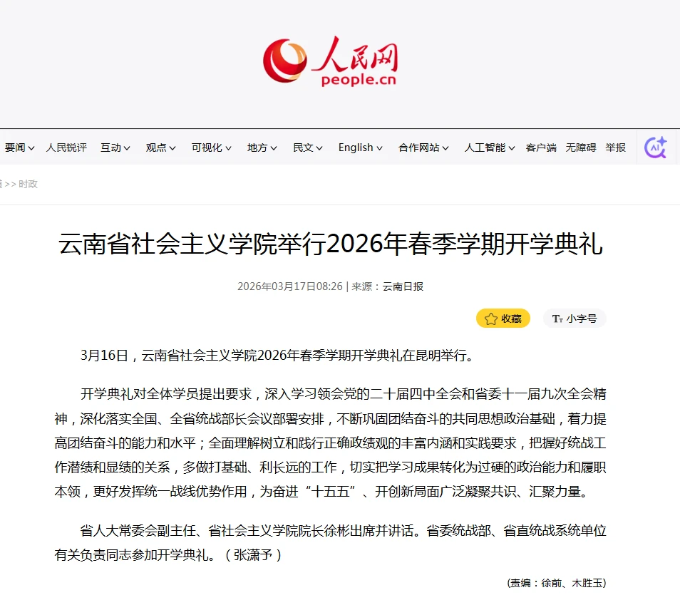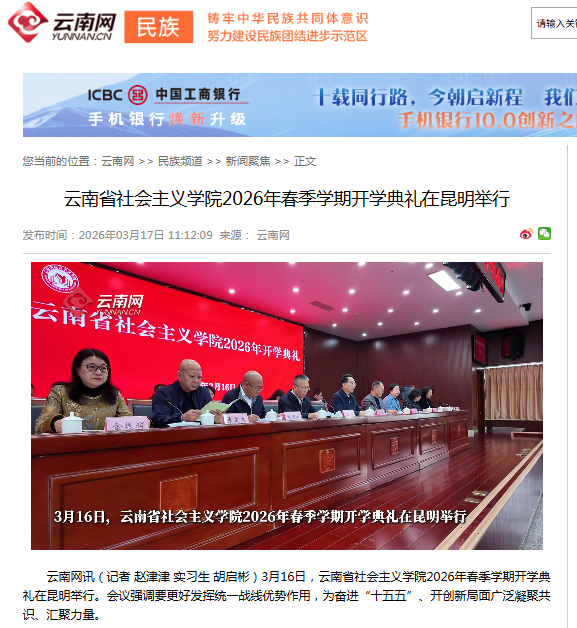下一篇:云南省社会主义学院2026年春季学期开学典礼在昆明举行 2026-03-17